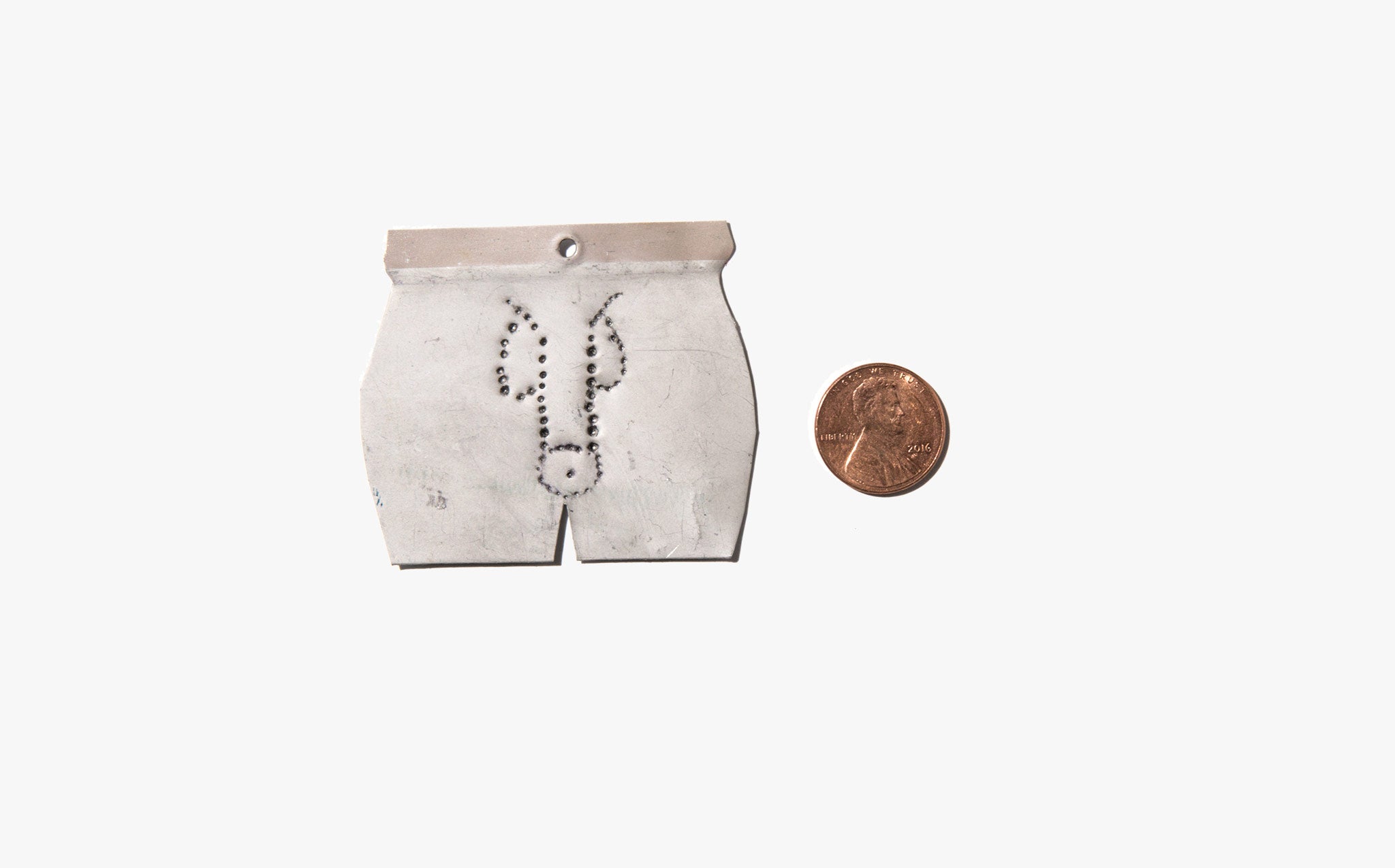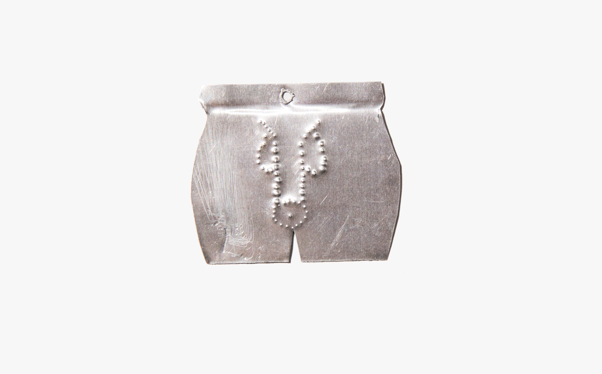 Hand cut and poked tin milagros from Mexico – talismans for luck and protection. Milagros in the shape of specific body parts are generally a prayer or offering for protection or to heal an ailment of that specific area of the body. The penis milagro is protective as well as a wish for virility and health of the member.