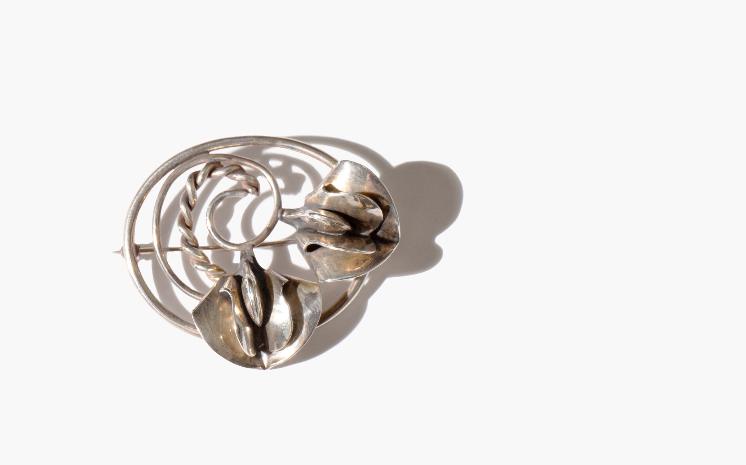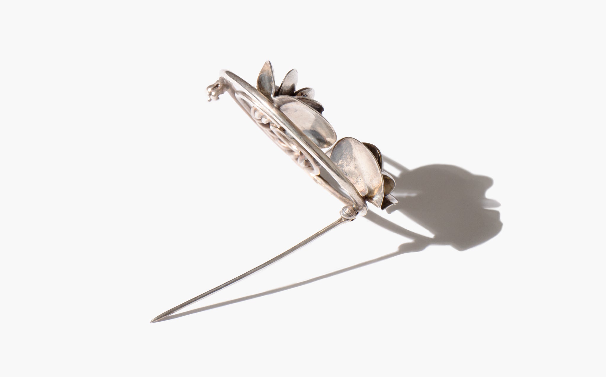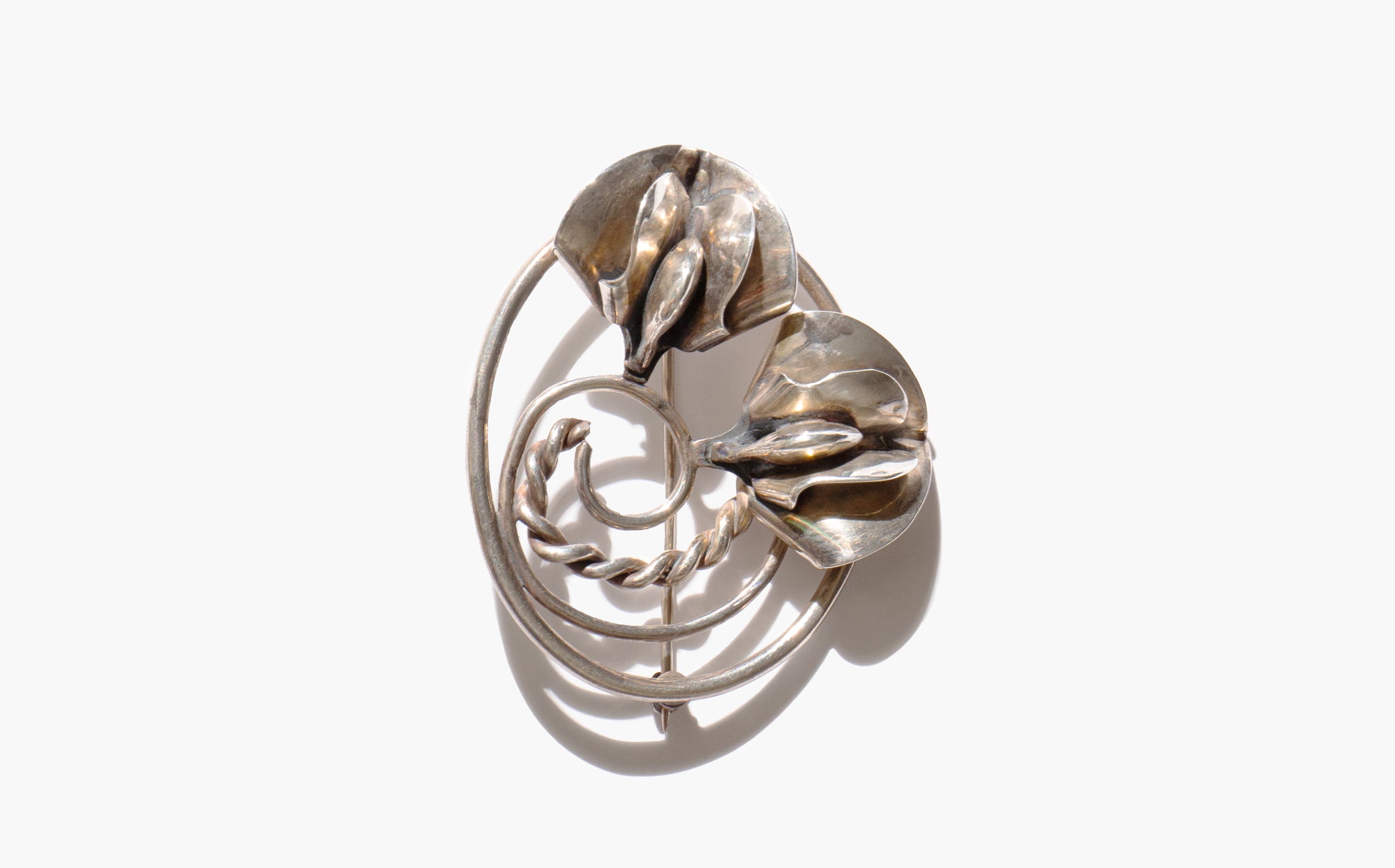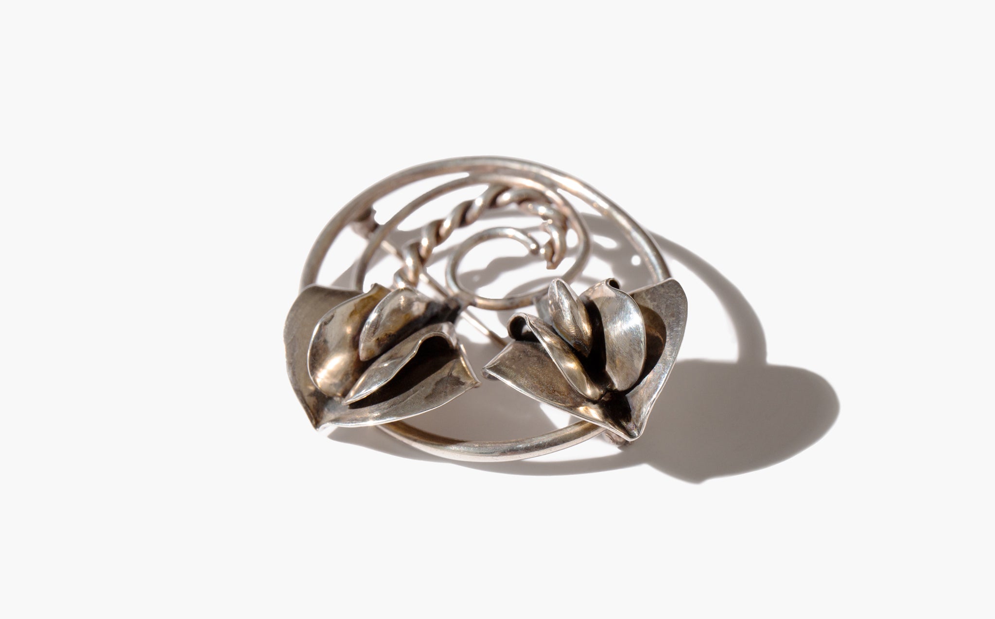Hand wrought oxidized sterling silver pin in a sculptural orchid motif. The Victorians gifted the exotic, rare orchid to symbolize deep, ardent passion and devotion.