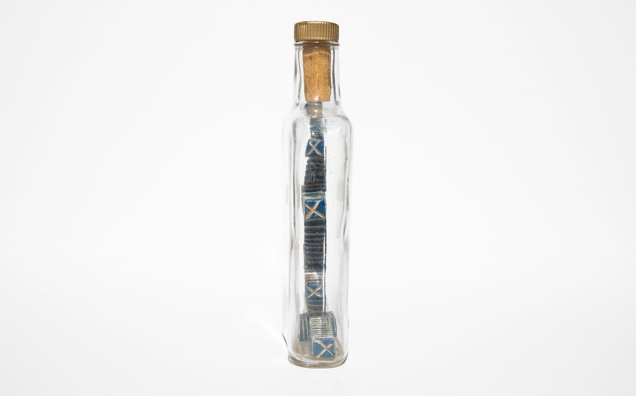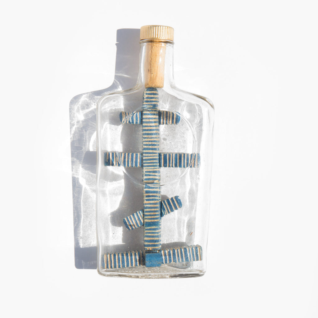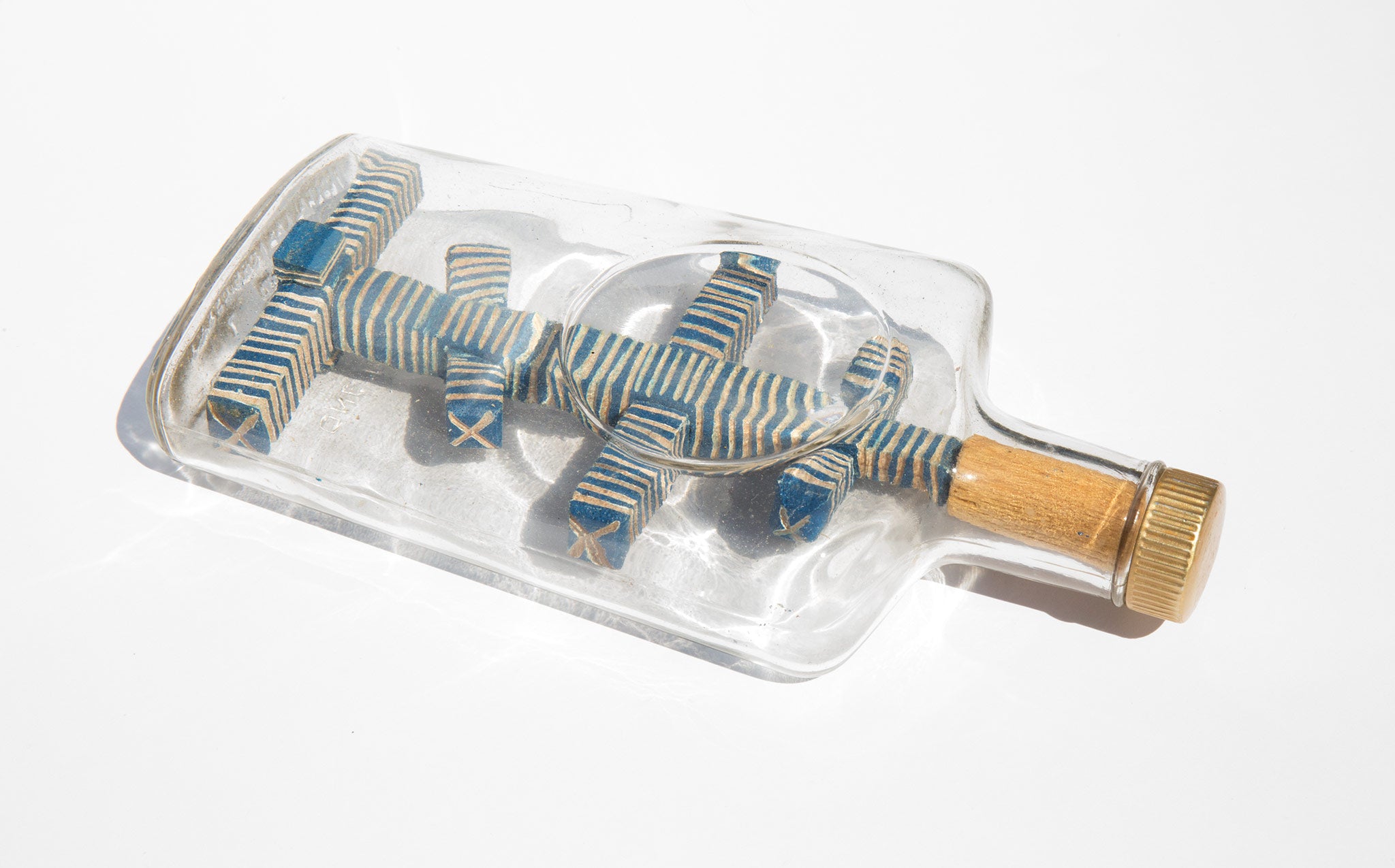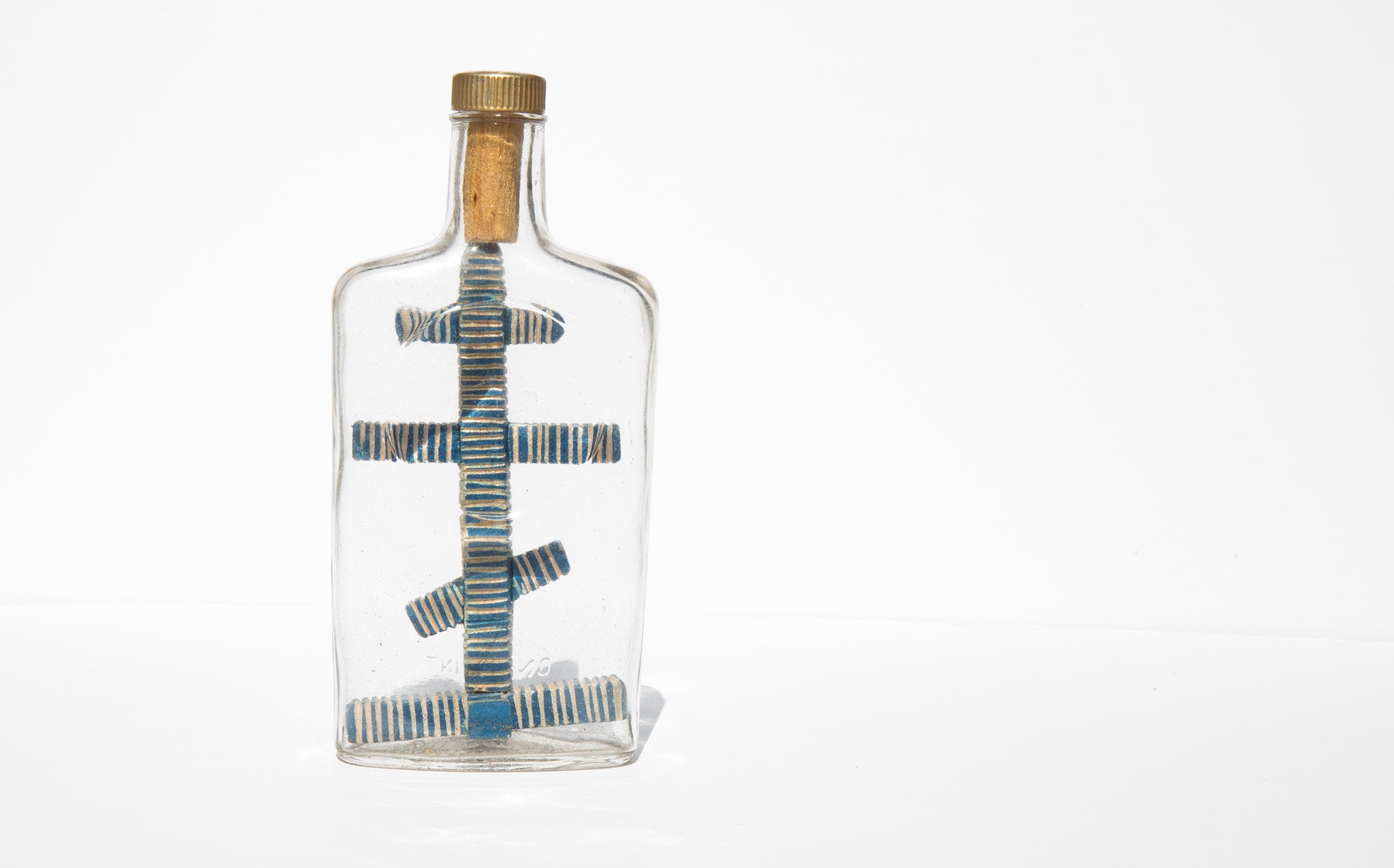 The original brain teaser – a whimsical sculpture in a vintage glass bottle.