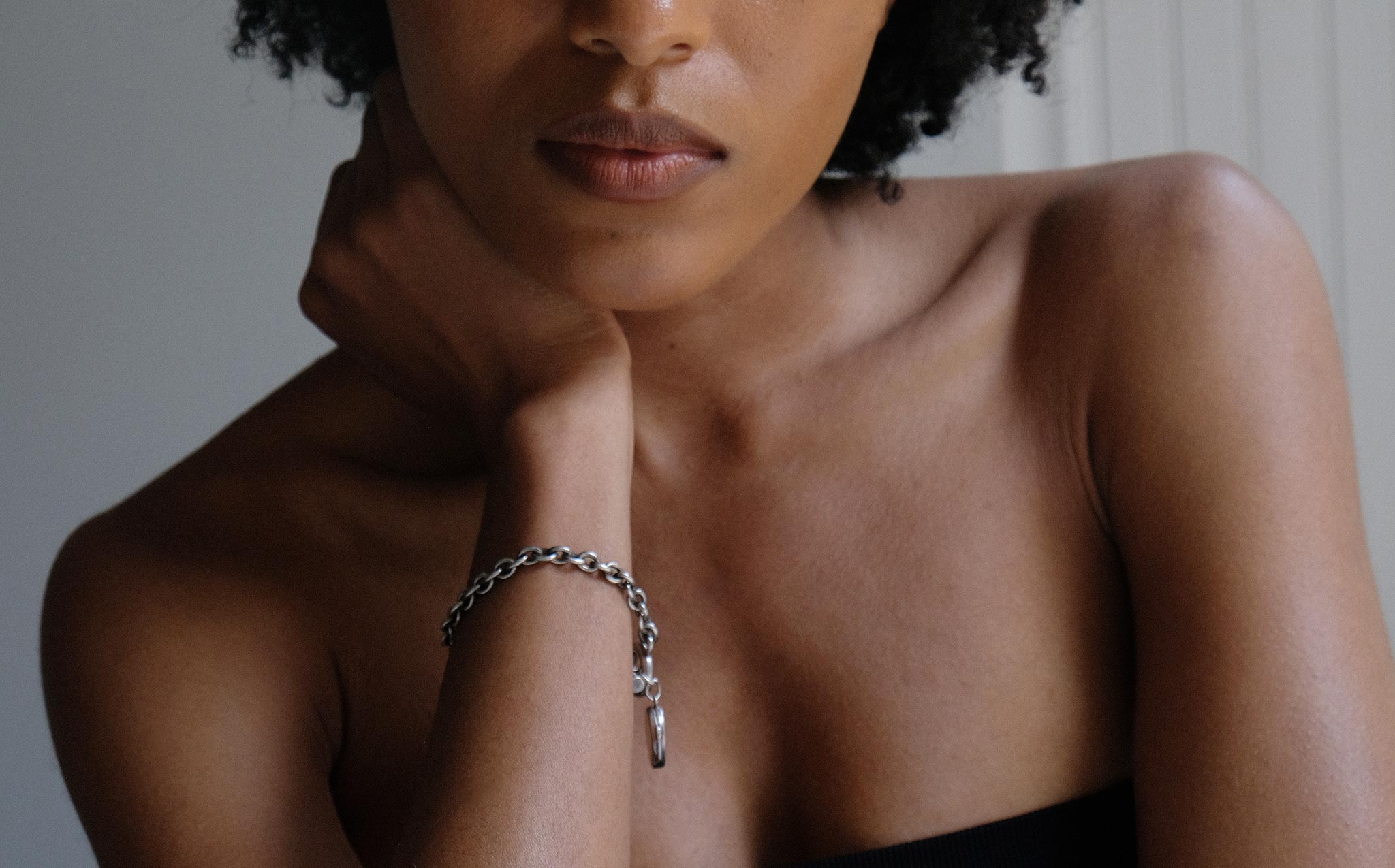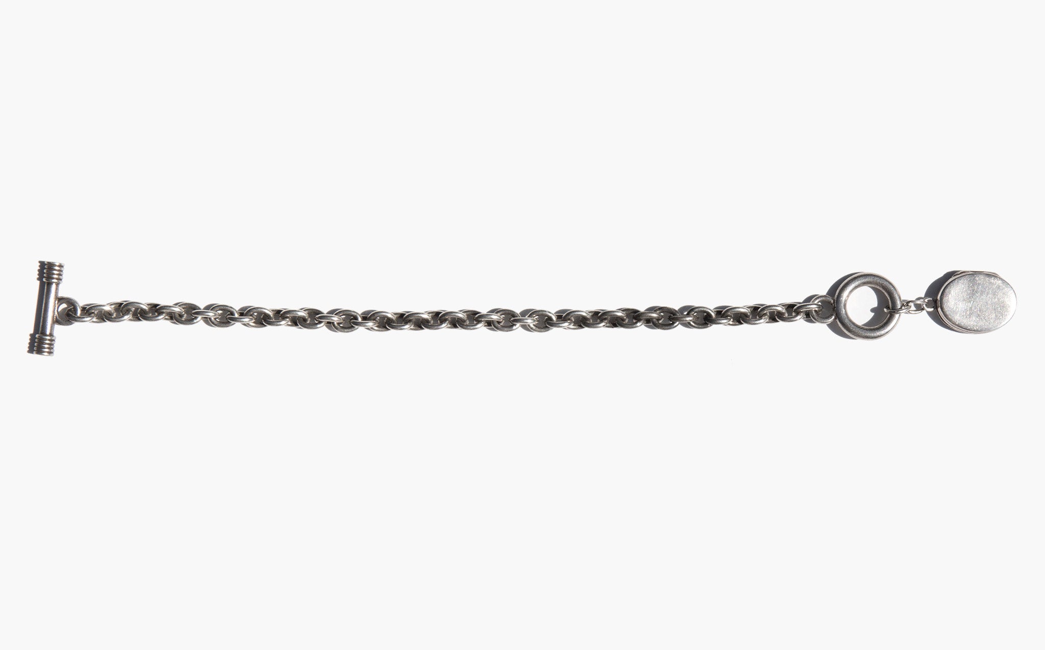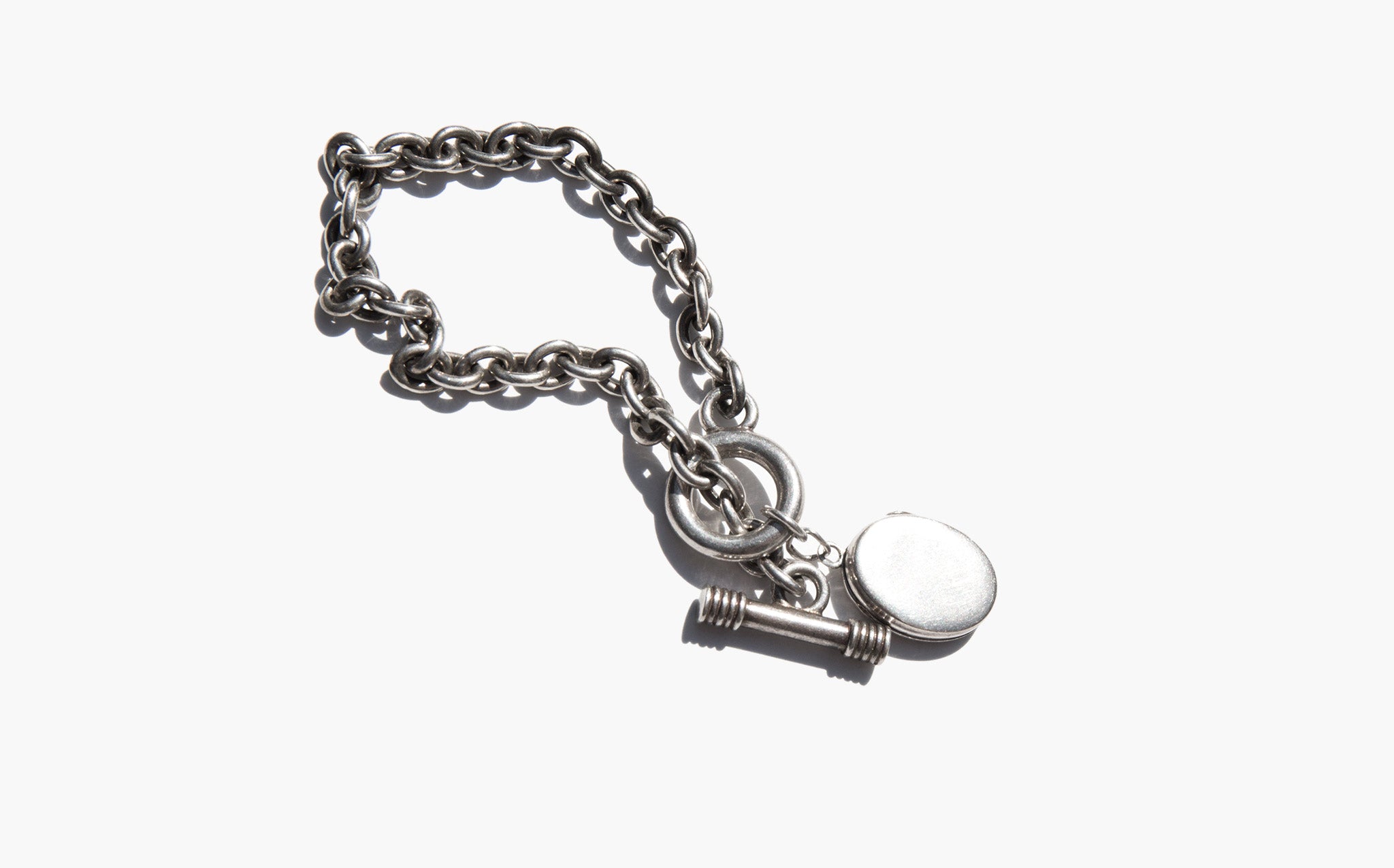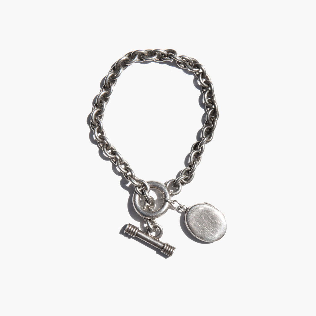 Lariat-style sterling silver chain bracelet with a small locket to hold tiny photos of those you love.