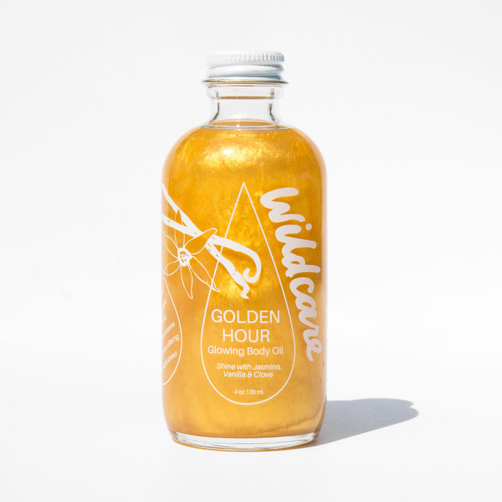 Like the golden hour at sunset, this lightly shimmering body oil illuminates and hydrates skin and hair. Made with apricot kernel oil to restore vitality, sweet almond oil for its rich concentration of linoleic & oleic essential fatty acids, and naturally occurring micro-reflective mineral particles for a subtle, radiant glow.