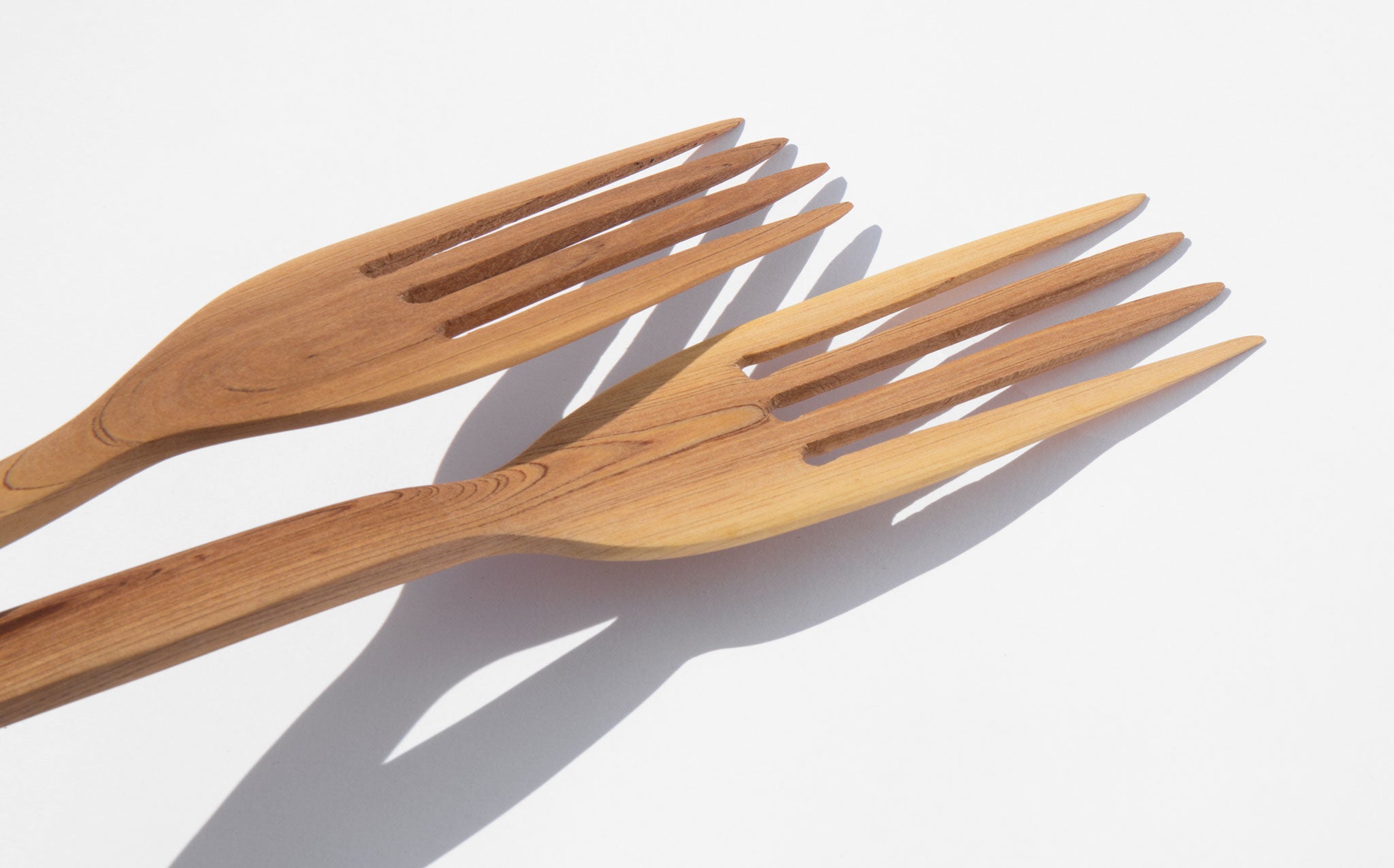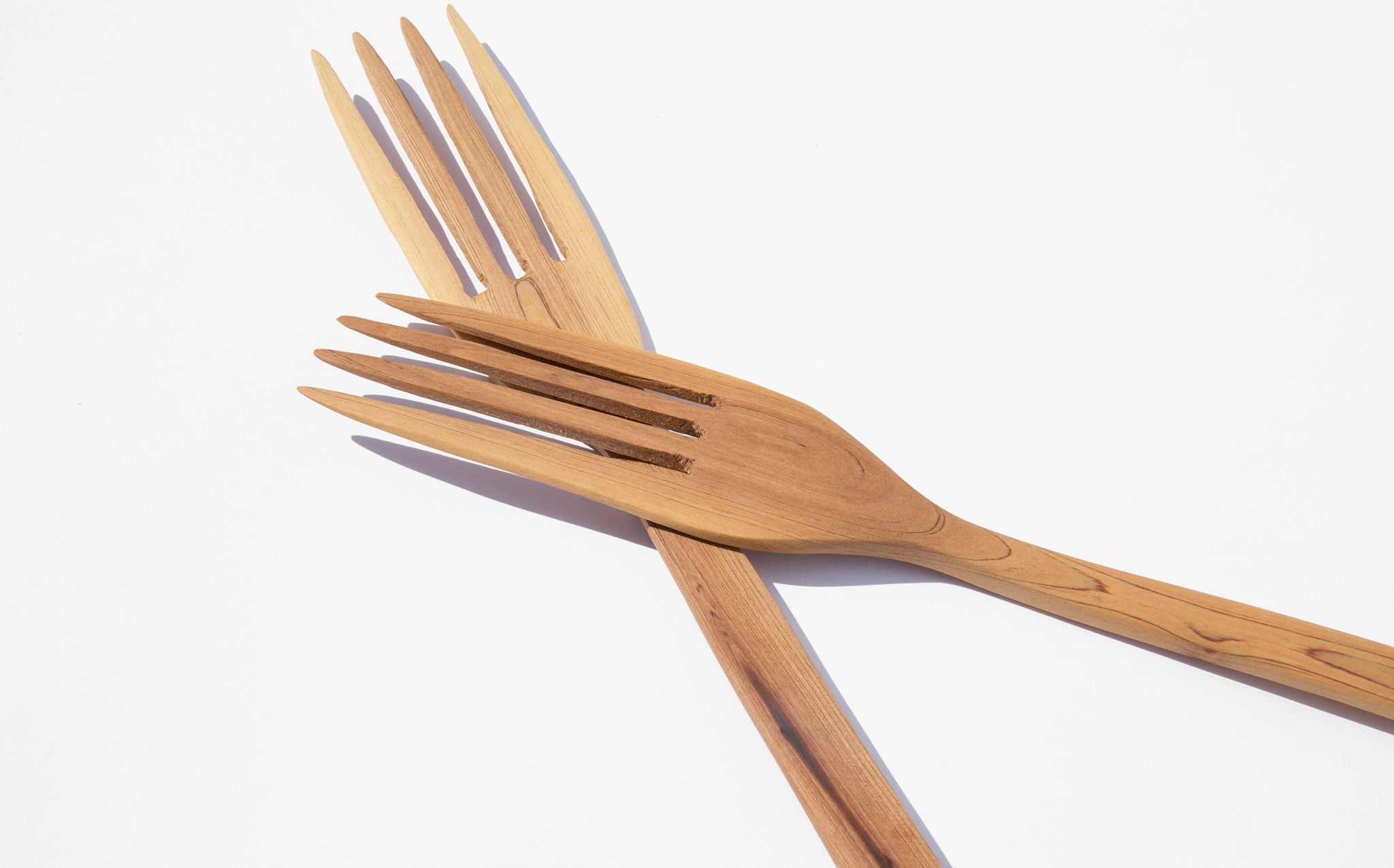 Set of 2 hand carved wooden salad servers or serving forks. Made in Tucson, AZ.